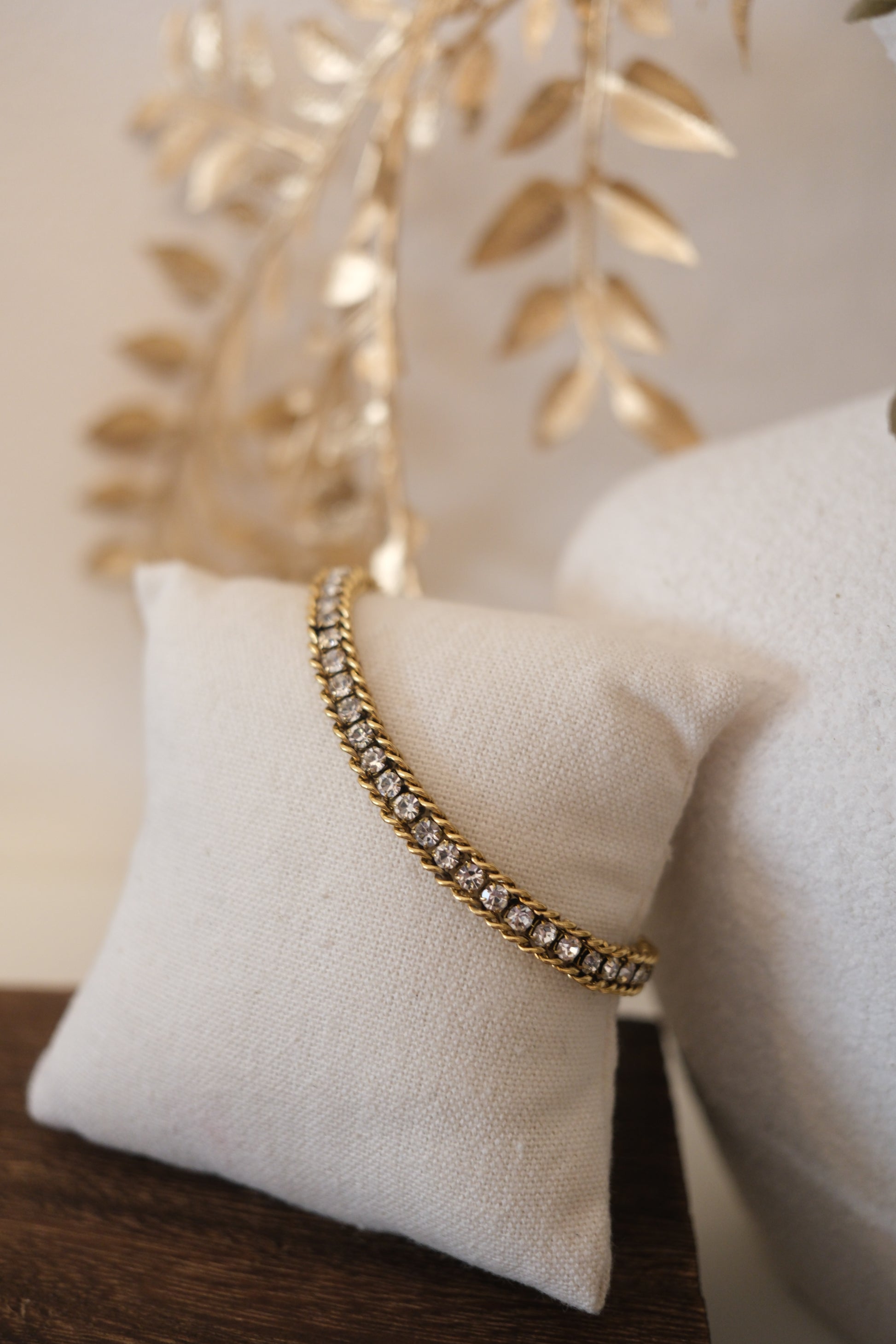 The Aurix Link Bracelet is a refined bracelet crafted with sleek interlocking links, each accented by a continuous line of sparkling crystals. The structured silhouette adds a modern edge, while the brilliance of the stones brings timeless elegance. Designed to sit gracefully on the wrist, this bracelet transitions effortlessly from everyday sophistication to evening glamour.