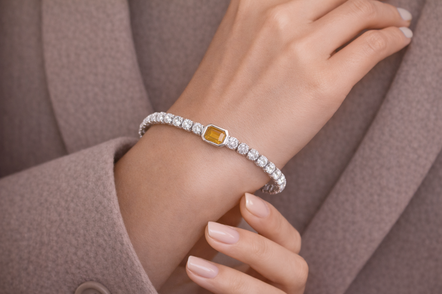 The Éclisse Aura Bracelet embodies the harmony between light and emotion. Designed with a continuous line of brilliant crystals, it symbolizes continuity, strength, and the quiet elegance that surrounds the wearer. At its center, the emerald-cut stone represents the aura, your personal energy and inner glow captured in refined color and form.