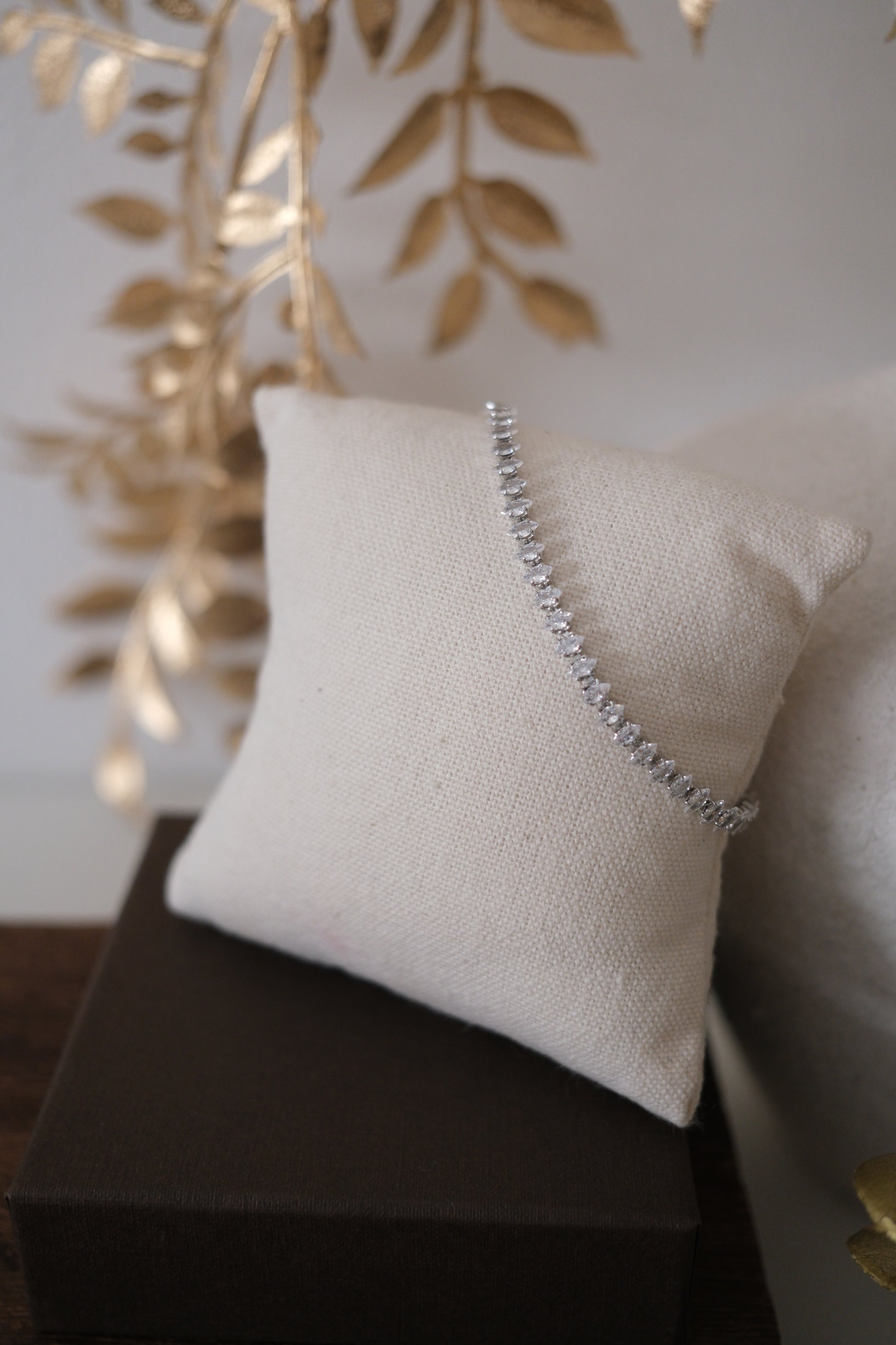 The Éclat Marquise Tennis Bracelet a radiant expression of elegance, the Éclat Marquise Tennis Bracelet features a continuous line of marquise-cut stones that shimmer with every movement. Designed to reflect light from every angle, its sleek silhouette and refined setting create a timeless statement of luxury. Effortlessly elegant on its own and breathtaking when layered, this bracelet embodies modern glamour with classic sophistication.