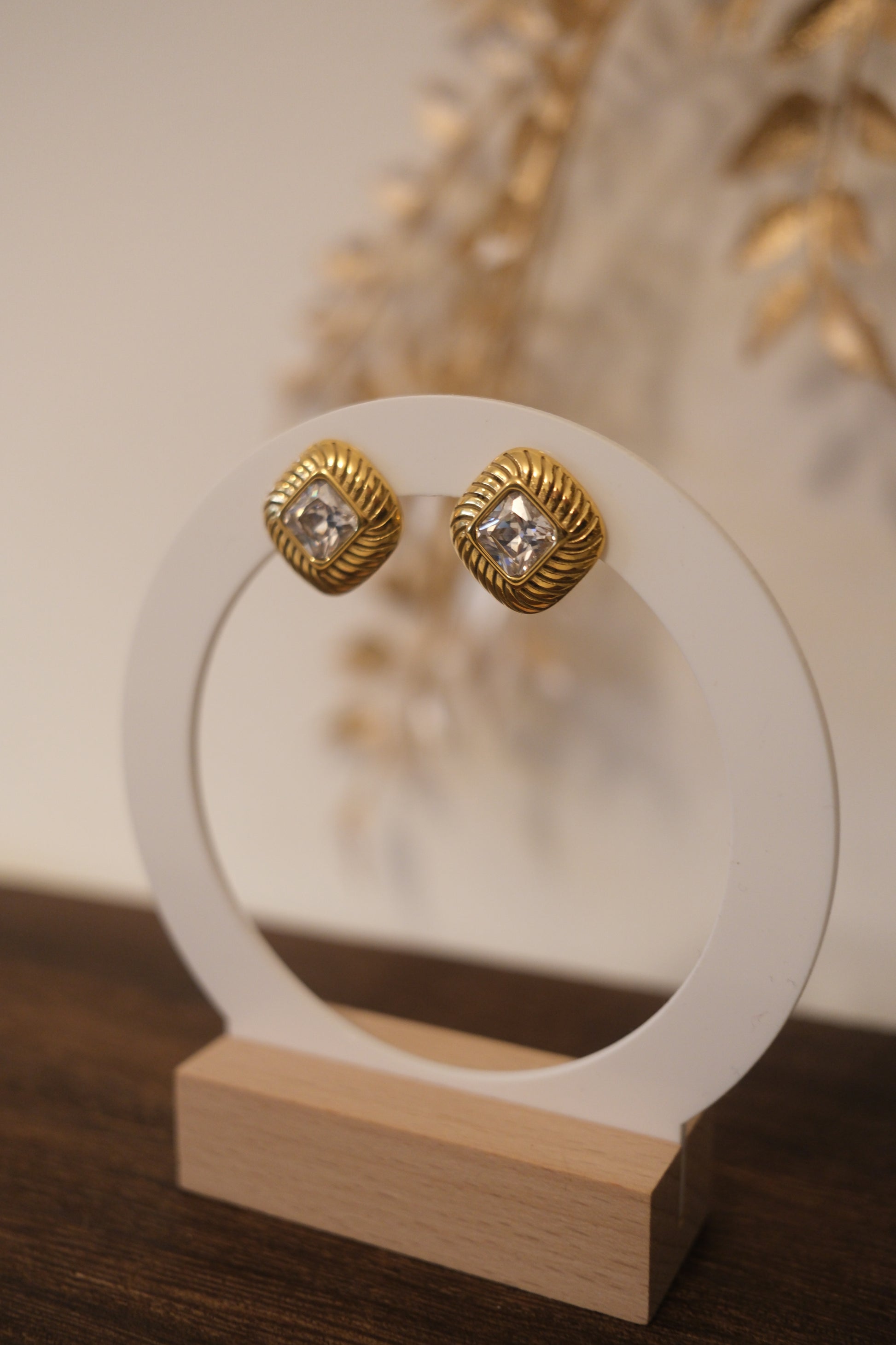 The Élan Aura Earrings symbolize confidence, vitality, and inner energy. The textured gold setting represents strength and movement, while the centered crystal reflects the wearer’s aura unique, powerful, and expressive. Designed to make a statement, these earrings celebrate individuality through color and light.