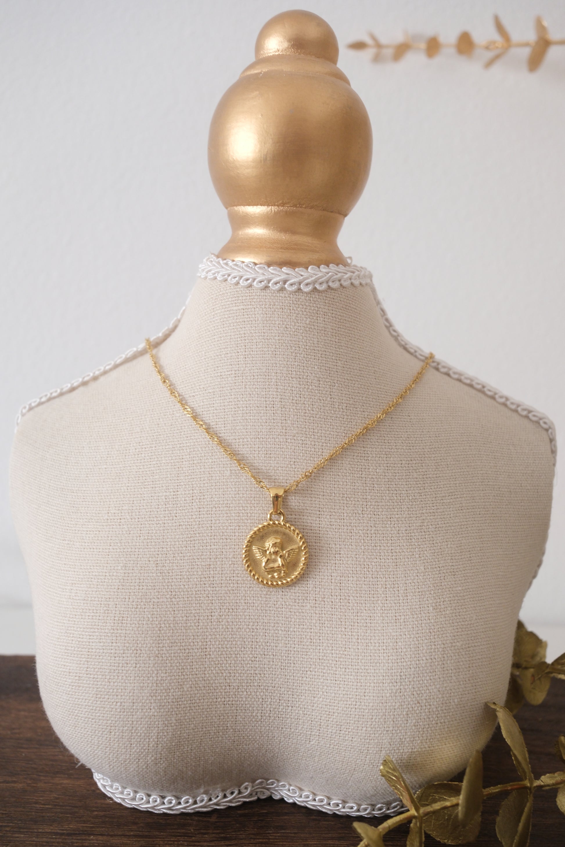 The Eros Medallion Necklace from the Greek Collection embodies the essence of love, protection, and divine beauty. The intricate angel design symbolizes purity, affection, and spiritual connection, serving as a guardian of love and light. Its golden glow reflects confidence, grace. A piece meant to be worn close to your heart as a reminder that love, in all its forms, is sacred and transformative.