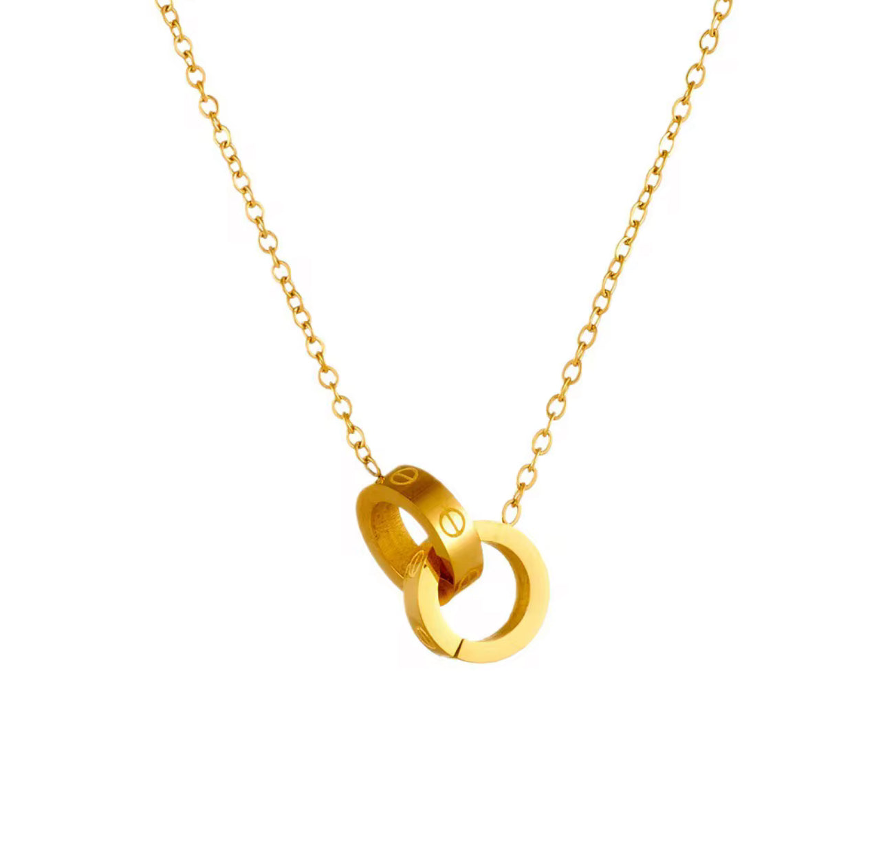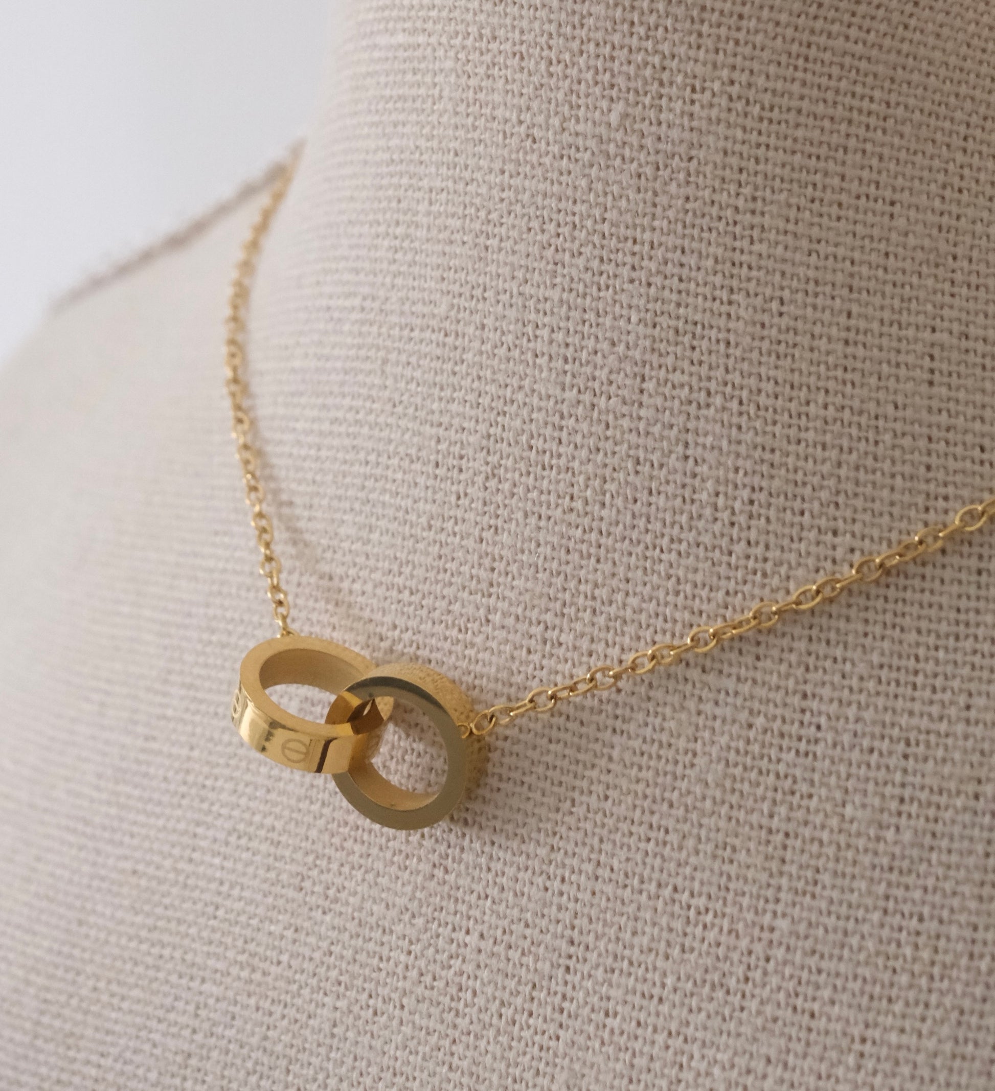 The Eterna Link Necklace symbolizes connection, unity, and timeless strength. This piece represents the harmony between individuality and togetherness. The rings move subtly with every motion, catching the light and adding a soft golden glow.