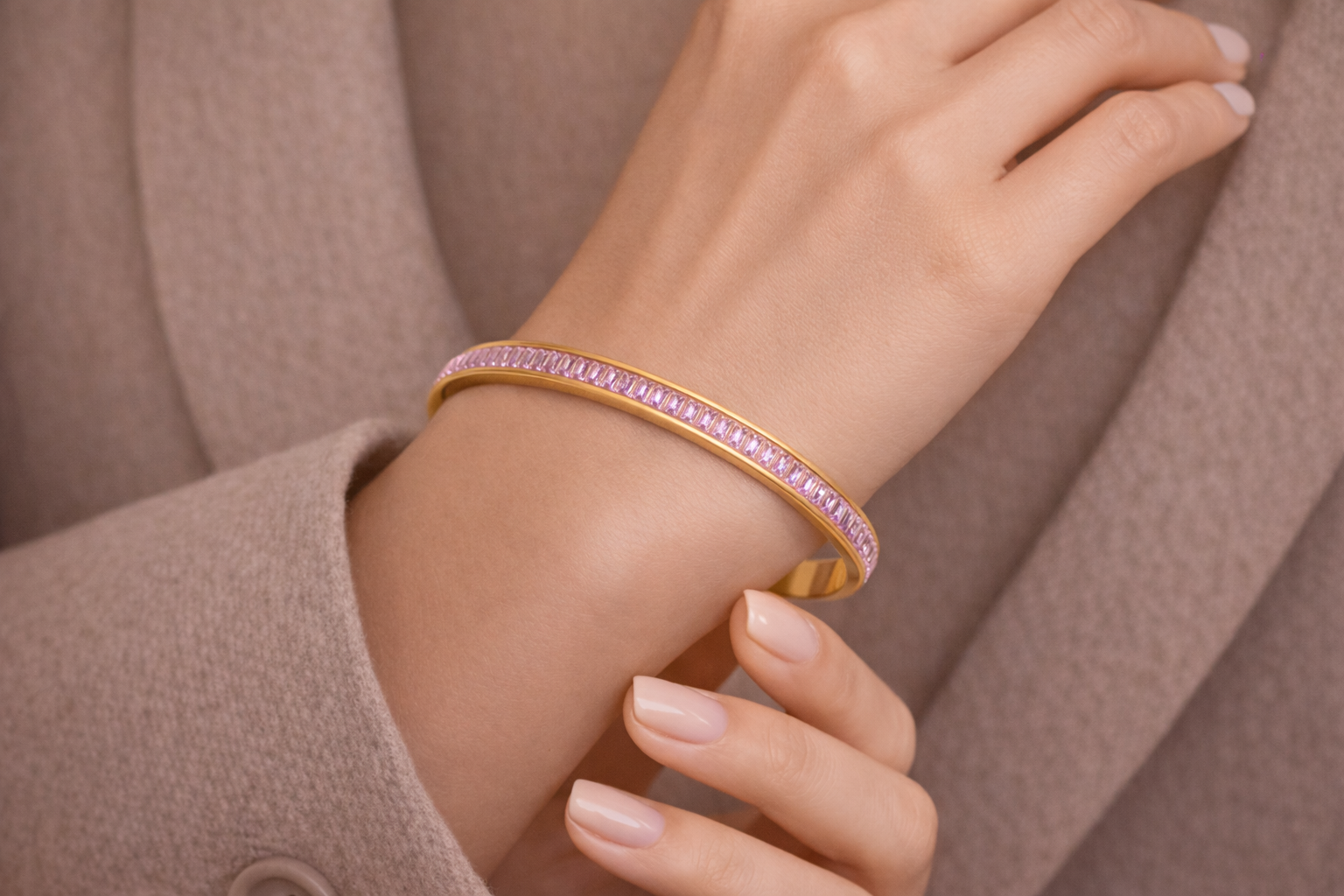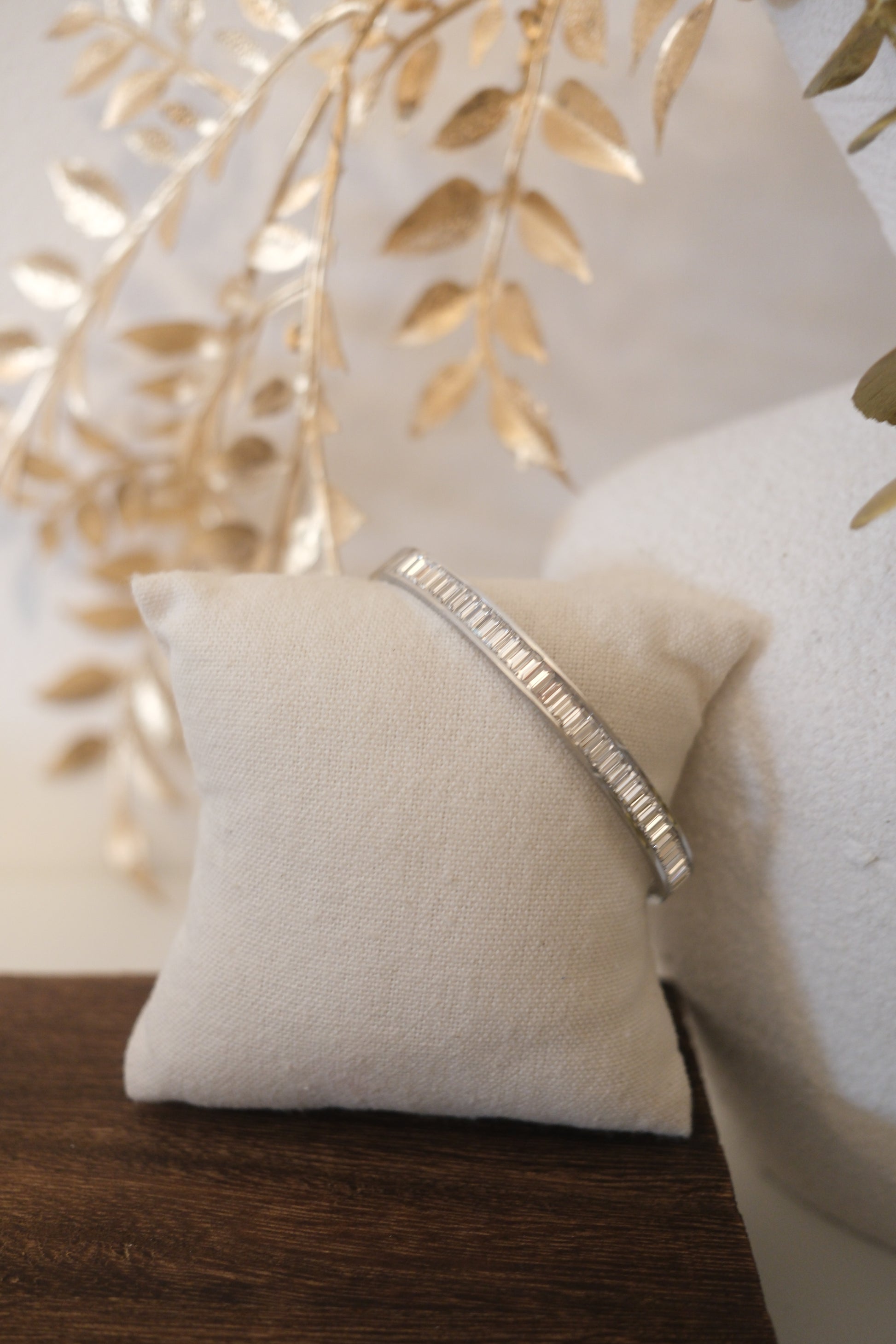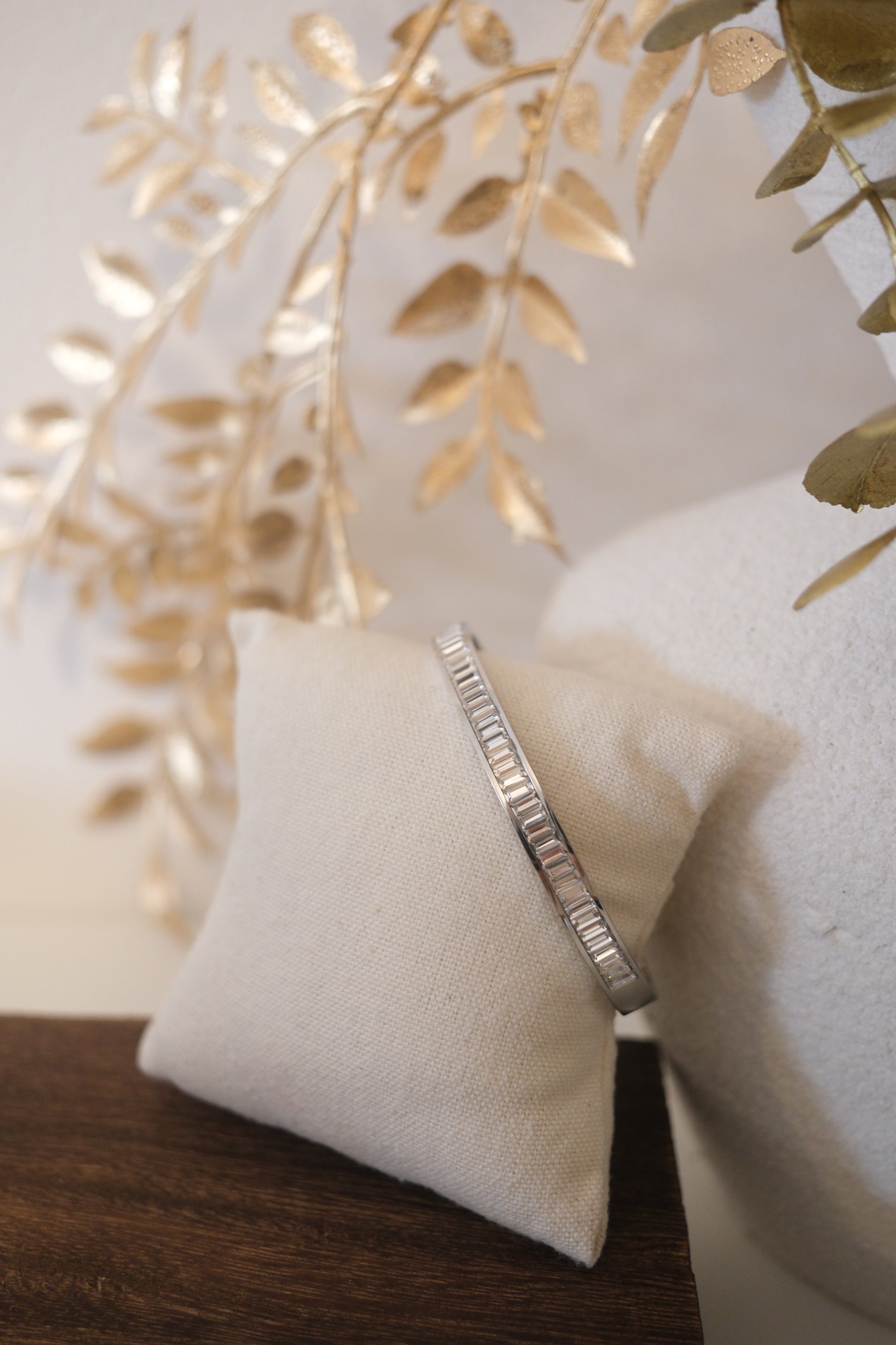 The Linéa Éternelle Bangle is a celebration of continuity, strength, and refined balance. Its clean, uninterrupted silhouette symbolizes life’s steady journey—elegant, resilient, and endlessly evolving. The precisely set stones running in a single line represent clarity and direction, reminding the wearer to stay aligned with their purpose while embracing growth.