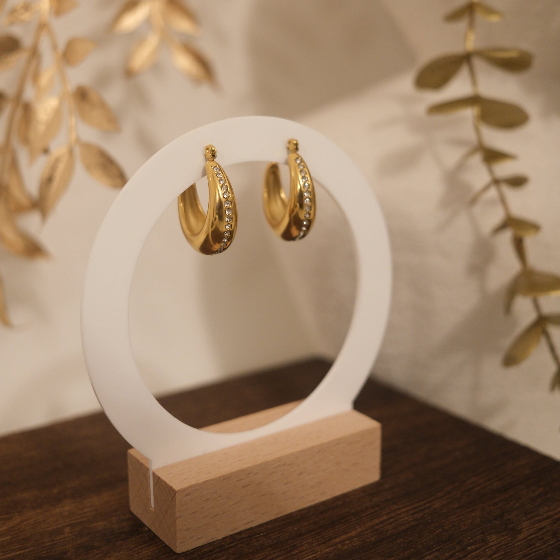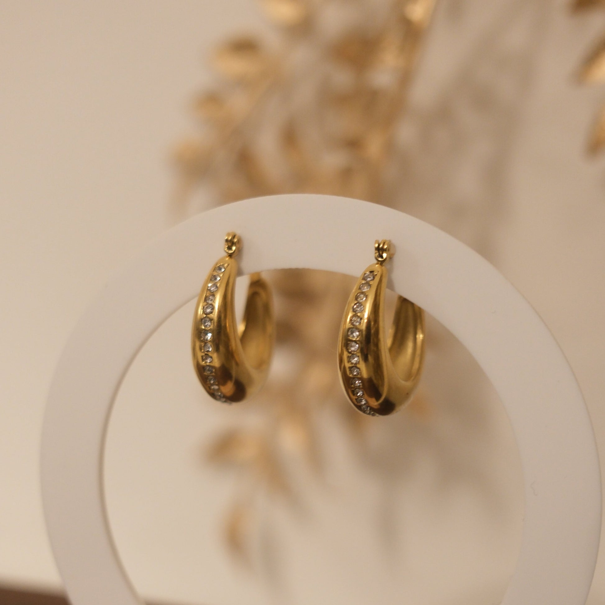 The Lumina Curve Hoops celebrate balance between boldness and refinement. The curved silhouette signifies continuity and flow, while the crystal accents symbolize clarity, intention, and inner glow. It's inspired by soft light and graceful movement.