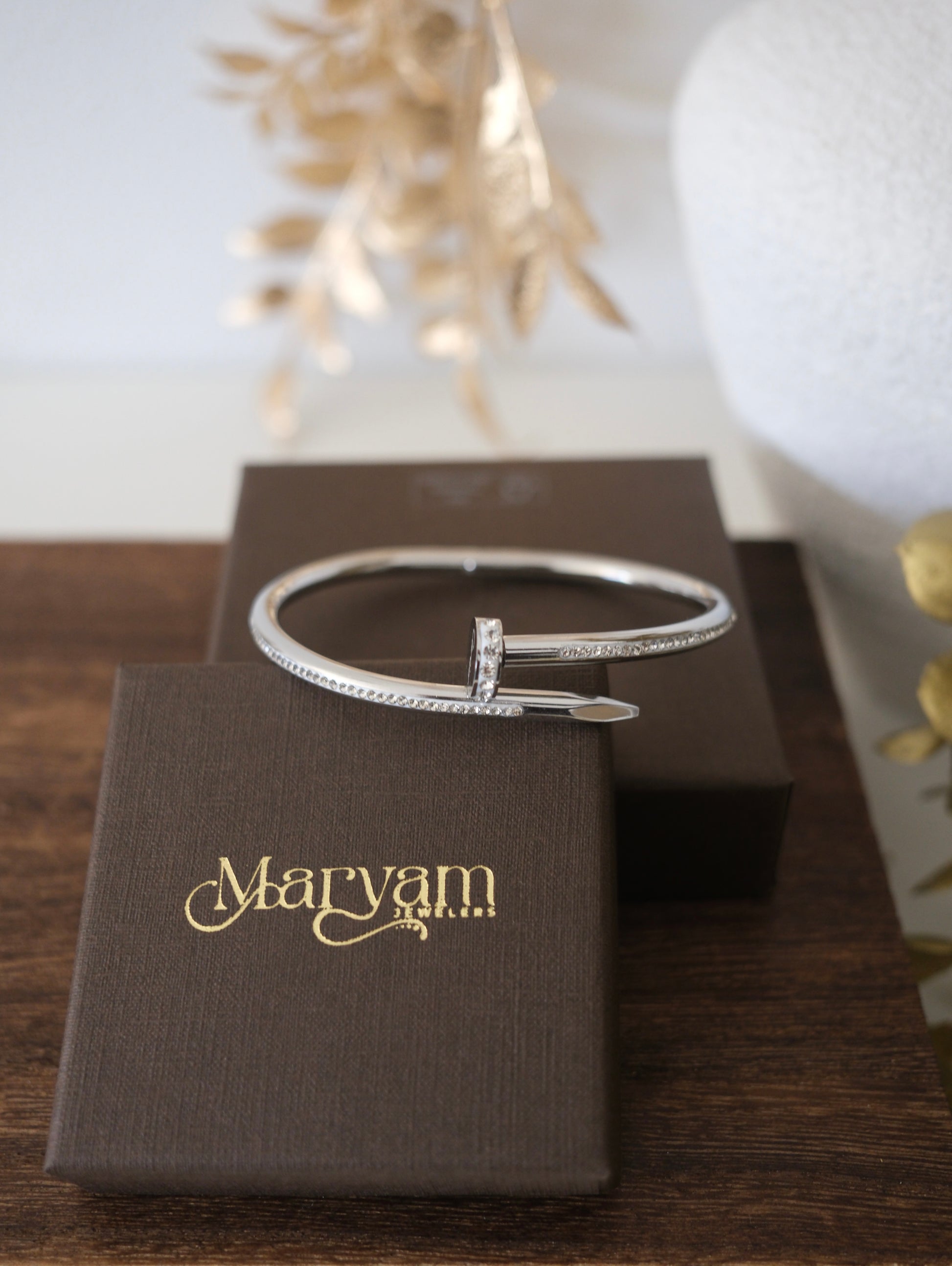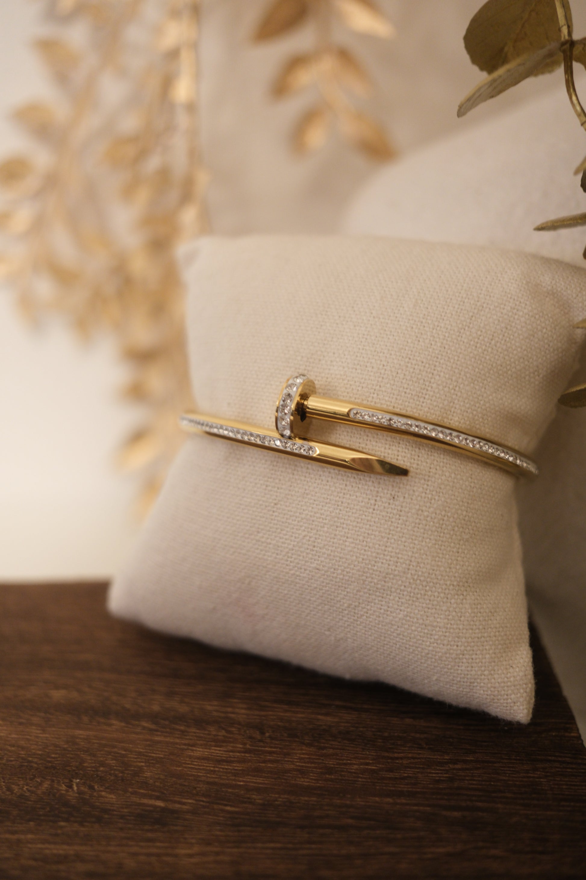 The Nailé Crystal Cuff reimagines the iconic Nailé silhouette with refined brilliance. A sleek form is accented with extended rows of shimmering crystals, creating a graceful balance between softness and structure. Elegant yet modern, this cuff is designed to catch the light while maintaining a clean, timeless profile.