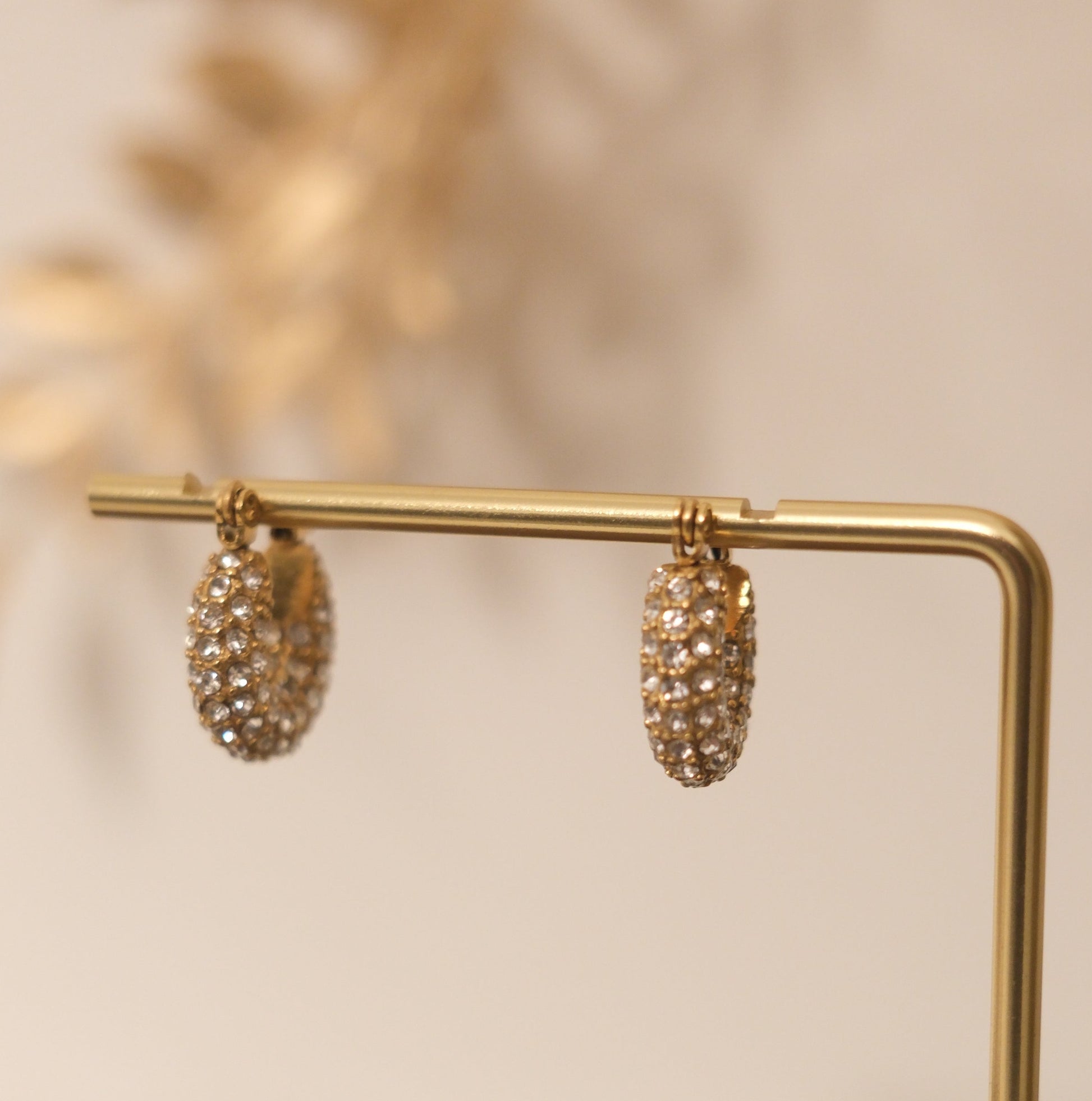 The Opaline Glow Hoops symbolize purity, emotional balance, and inner illumination. Their rounded form represents wholeness and feminine flow, while the pavé crystals catch the light with a gentle, luminous sparkle, never overpowering, always elegant.
