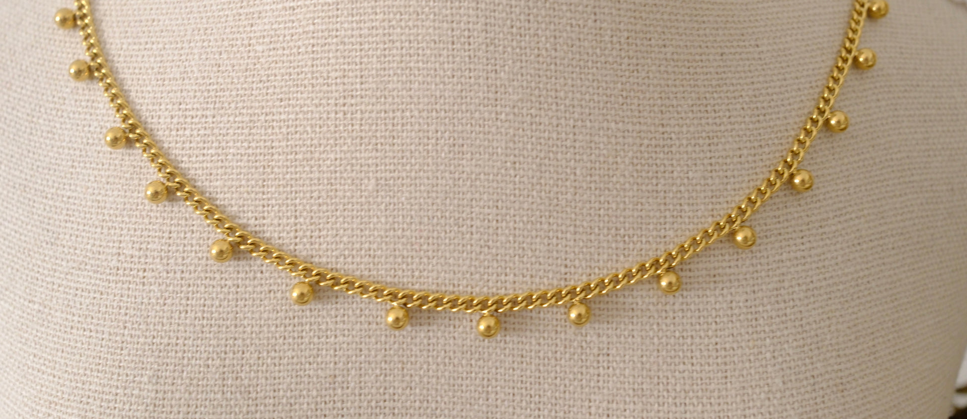 The Solé Necklace captures the essence of sunlight — radiant, pure, and effortlessly elegant. Crafted in golden tones with delicate beaded details, it reflects light with every movement, creating a soft shimmer reminiscent of morning rays dancing on the horizon. Each bead symbolizes warmth, vitality, and confidence, channeling the life-giving energy of the sun.