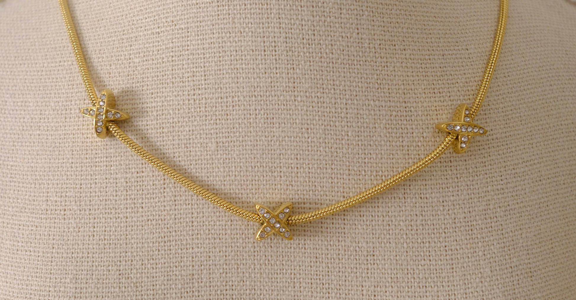 The Starlight Necklace captures the sparkle and elegance of a night sky filled with shining stars. Designed with three crystal-studded star charms along a sleek gold chain, it symbolizes hope, guidance, and inner light. Each crystal reflects positivity and clarity — inspiring you to stay confident and radiant no matter where life leads.